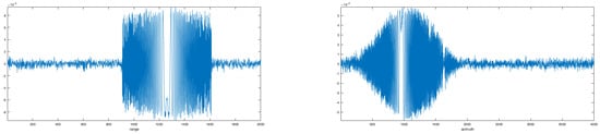To select the proper length of the range chirp history and reconstruct a clean reference in range, a thresholding procedure was used; after the SVD decomposition, the reference signal power is much higher than the background noise, so this procedure reveals effective. In this case, the selected range time duration by the choice of a threshold at 10% of the signal peak value was efficient. After the procedure described in the previous subsection, a clean range reference function was obtained.