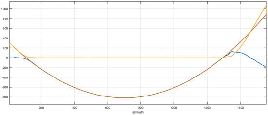 Starting from the extreme points of such estimated phase functions a polynomial fitting was used to construct a clean version of the phase histories to be used in the description of the two reference functions, both in azimuth and in range. The unwrapped phase of the reference function in either range or azimuth was approximated by a polynomial function and used to clean up the phase of the reference functions.