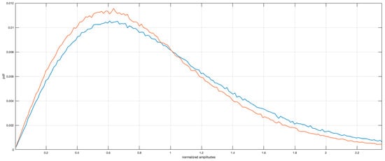 For the two focused images, a comparison of the amplitude statistics for the images focused with standard RD approach and B-SAR are plotted in