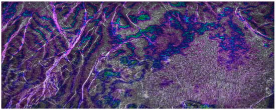 Figure 13 shows the (5 looks, slope corrected) interferometric image obtained by B-SAR focusing algorithm with superimposed the intensity image. A close correspondence between the flat zones in the valley with the smooth variations of the phase seem to assess the good behavior and the phase stability of the proposed processing technique.