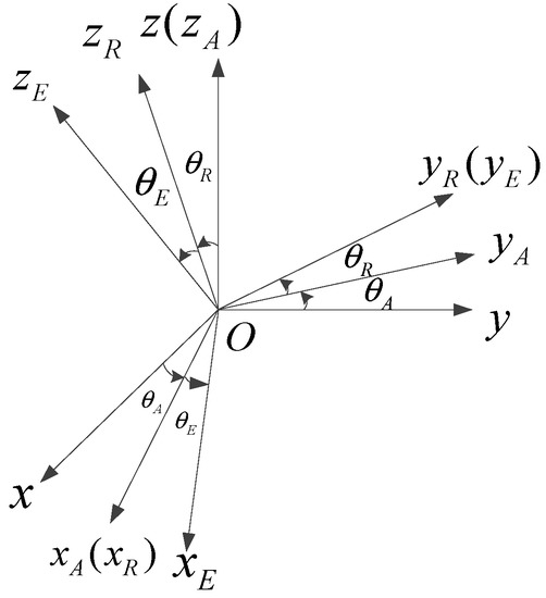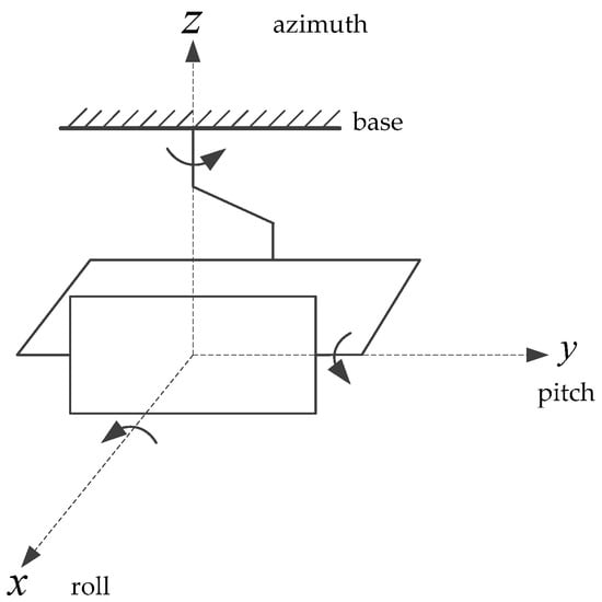 The three-axis inertially stabilized platform is a system with strong coupling [,,]. Before the establishment of the mathematical model, we need to make the following assumptions: