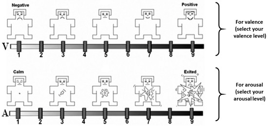 - Bradley, M.M.; Lang, P.J. Measuring emotion: The self-assessment manikin and the semantic differential. J. Behav. Ther. Exp. Psychiatry 1994, 25, 49–59. [Google Scholar] [CrossRef]