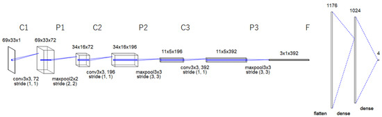 As illustrated in Figure 2, the proposed CNN architecture has three convolutional layers (C1, C2, and C3), three subsampling layers in between (i.e., P1, P2, and P3), and an output layer F.
