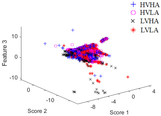Scatter plot of the first three Fisher scores based on a subject’s data in MAHNOB.