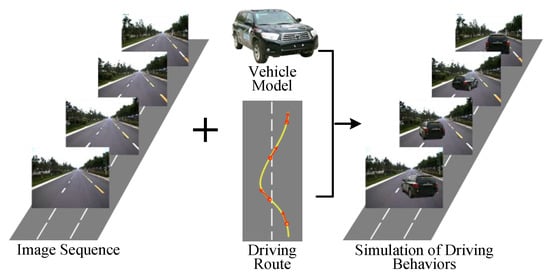 Driving behavior is the main basis for evaluating the performance of an unmanned vehicle. In simulation tests of unmanned vehicles, in order for simulation results to be approximated to the actual results as much as possible, model of driving behaviors must be able to exhibit actual motion of unmanned vehicles. We propose an automatic approach of simulating dynamic driving behaviors of vehicles in traffic scene represented by image sequences. The spatial topological attributes and appearance attributes of virtual vehicles are computed separately according to the constraint of geometric consistency of sparse 3D space organized by image sequence. To achieve this goal, we need to solve three main problems: Registration of vehicle in a 3D space of road environment, vehicle’s image observed from corresponding viewpoint in the road scene, and consistency of the vehicle and the road environment. After the proposed method was embedded in a scene browser, a typical traffic scene including the intersections was chosen for a virtual vehicle to execute the driving tasks of lane change, overtaking, slowing down and stop, right turn, and U-turn. The experimental results show that different driving behaviors of vehicles in typical traffic scene can be exhibited smoothly and realistically. Our method can also be used for generating simulation data of traffic scenes that are difficult to collect.