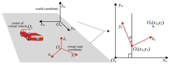 We assume that the coordinate origins of real road environment, virtual road scene, and vehicle model are Ow, Os, and Ov respectively. As shown in Figure 3, the angle between ys and yw is θ.