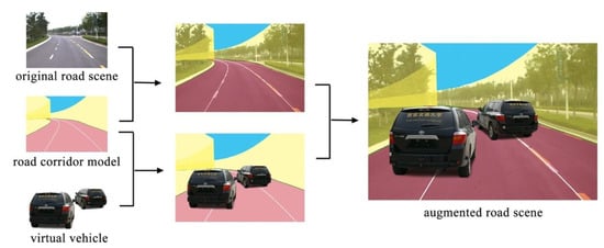 The method in Section 4 and Reference [] is a pervasive vehicle synthesis method for augmented traffic scene. However, without constraint of road space structure, the synthetic vehicle may appear at illogical location in the road scene, shown in Figure 7. Thus, we propose a logical model named as “corridor model” to restrict the motion range of virtual vehicles.