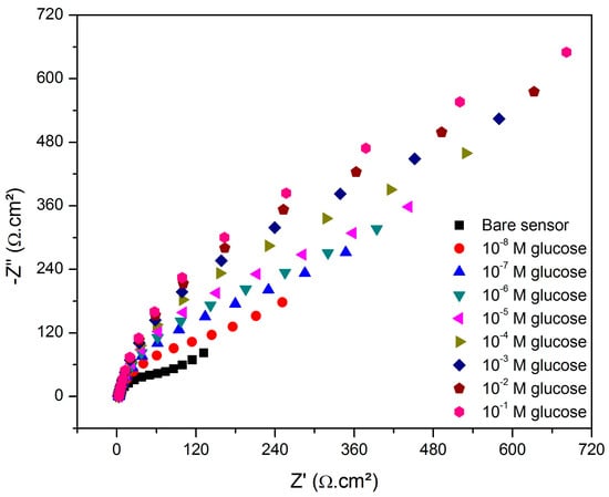 3.2. Detection of Glucose in Aqueous Solution by EIS