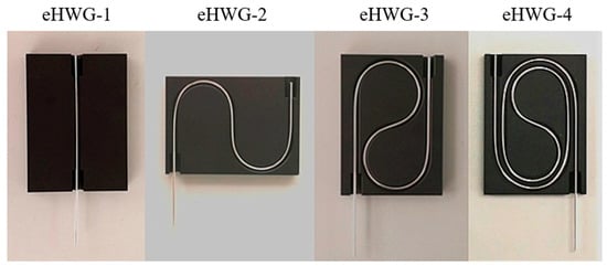 Referring to the iHWGs, four kinds of module substrates were designed, as shown in Figure 1. The four modules had different channel shapes. They were chosen by considering the factors of channel length and bending configuration to compare the sensing performance.