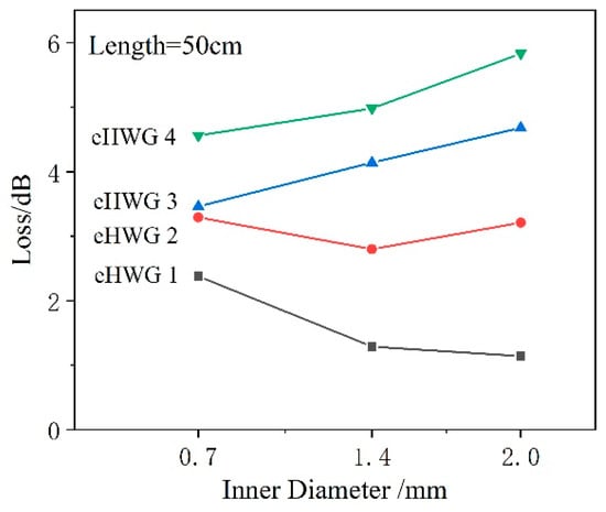 Spectra losses of the waveguide with different IDs (length = 50 cm).