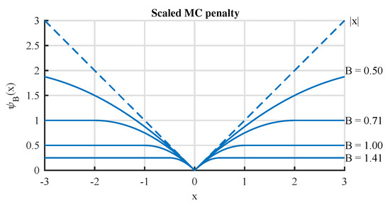 - The non-convexity of the penalty is controlled by the parameter . When , the elements of B are zeros, and the penalty degenerates to the -norm. When , a higher will lead to higher non-convexity.