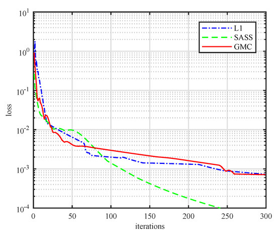 Figure 2 illustrates the scalar version of GMC penalty functions. It shows that the GMC penalty has a basic property that large values are penalized no less than small values, but the degree of punishment is not as severe as -norm [35]. Because of this property, it becomes possible to overcome the drawback of underestimating the high-amplitude components for the -norm penalty. Moreover, the GMC penalty function is non-convex itself, but it can be carefully customized to maintain the convexity of the cost function to be minimized. This means that the global optimization of the cost function can be achieved with GMC penalty.