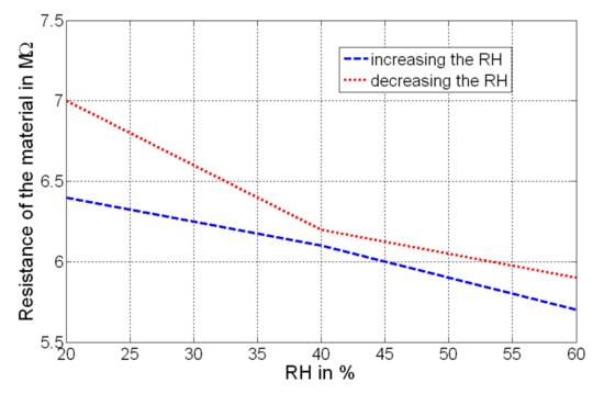 Resistance of the material, considering the increasing and the decreasing condition of RH.