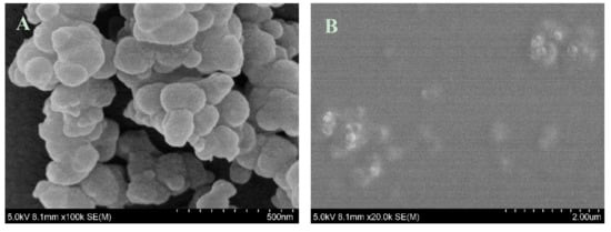 The PDA film was prepared by the self-polymerization of dopamine in alkali media. SEM was carried out to characterize the morphology of the PDA film before and after AuNCs immobilization (Figure 2). As shown in Figure 2A, polydopamine nanoparticles with diameter of about 100 nm were formed spontaneously onto the quartz glass. Polydopamine film was used as an adhesion layer to immobilize the BSA-AuNCs for bilirubin sensor fabrication. The film surface became smooth after BSA-AuNCs immobilization (Figure 2B).