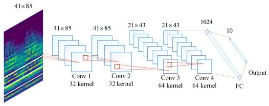 The two networks of TSCNN both contain four convolution layers and one fully connected layer. The framework of the proposed four-layer CNN is shown in Figure 2; the architecture of the model is as follows: