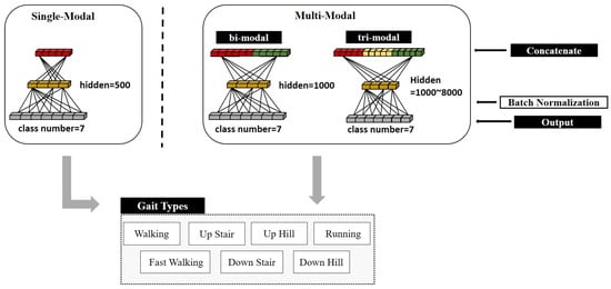 Figure 8. Structure of a fully connected network that determines the type of gait using the single- and multi-modal DCNN feature vector as input.