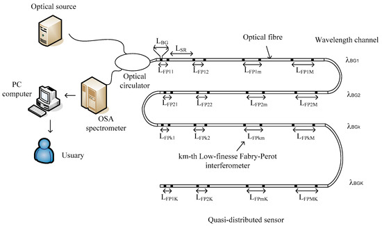 The quasi-distributed sensor based on Frequency Division Multiplexing/Wavelength Division Multiplexing (FDM/WDM) techniques and low-finesse Fabry-Perot interferometers.
