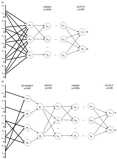 Topologies of the compared ANNs: (a) ANN_SW/DW, (b) ANN_DG.
