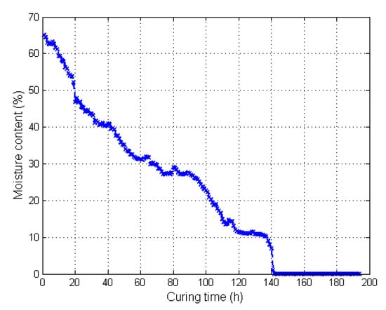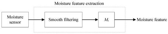 As for the moisture feature extraction (Figure 11), the data were collected from the moisture detector and then denoised using a smooth filter. The moisture feature labeled Mt was extracted.