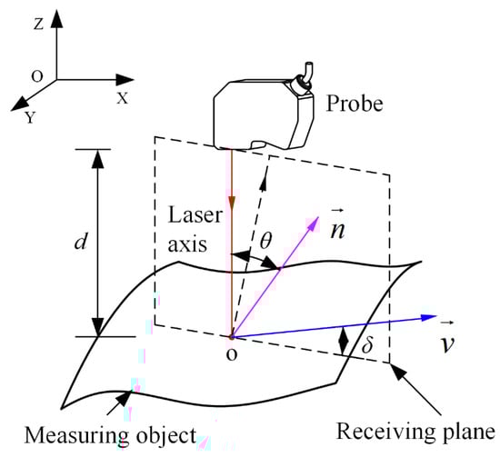 As a result of the merger of technological advances in both the optical and sensor industries [1,2,3], the laser triangulation probe has gradually replaced the contact probe in various fields, and it is usually characterized as a precise measurement device to effectively acquire the depth information of an object. Therefore, it is widely applied in the fields of product design and manufacturing and industrial quality inspection [4,5,6,7]. However, compared with the traditional contact probe, although the triangulation probe on the market can meet the requirements of time limitation and untouched on-line measurement for digitizing techniques, the measuring accuracy and reliability are easily influenced by various factors [8], because of its overly reliance on the measurement requirements of both the consistency of object-surface scattering light intensity and a high level of consistency between the laser optical axis and the normal vector at the measuring point [9,10]. However, there still exist some differences between the theoretical requirements and practical operations in the field of industrial measurements because the measured surface is almost inevitably covered with residual greasy dirt or other substances, and the measuring target is usually a complicated non-uniform shape. In general, most of these differences [11] are directly influenced by the surface optical characteristics and/or the probe’s position and orientation parameters with respect to the measuring object; such influence factors can be further considered as the primary sources of measurement error [12,13]. Therefore, for taking advantage of this optical technology fully on the depth measurement, it is necessary to have a best control of these error factors.