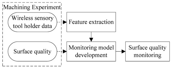 In mechanical manufacturing, surface quality is one of the key factors for the performance of products. Low surface quality will cause many defects, such as abnormal assembly, appearance, low fatigue strength and poor corrosion resistance, and affect service life [1]. Therefore, it is important to assure that the surface quality of mechanical products meets technical requirements. A large amount of research [2,3,4] has emphasized surface quality and many factors affecting the surface quality have been found, such as cutting parameters, tool wear and workpiece material. In industry, operators often select some recommended combination of cutting parameters according to some working reference or their experience to ensure the required surface quality and productivity. However, there are various factors that could affect the surface quality, which are still under-studied. For example, uneven materials or worn tools will lead to fluctuations in surface quality. To control the surface quality, setting cutting parameters cannot be relied upon alone. Therefore, the surface quality, mainly including surface roughness, waviness and errors of form, are usually measured offline after the machining process is already finished. If the machining quality does not meet requirements, the machining process should be stopped and adjusted in time. For some precision parts, the traditional approach is to apply manual finishing operations to achieve requirements, which is a time-consuming process. Thus, it is crucial to develop a surface quality monitoring system to control the quality online instead of offline.