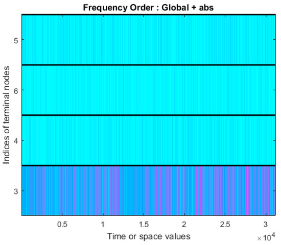 The bending moment signals are decomposed into the approximation component and detailed component, which represent the low-frequency band and high-frequency band, respectively. Db5 is used as the mother wavelet. The wavelet packet spectrum of signals for surface quality level 4 is shown in Figure 7. The statistical features including the absolute mean value, root mean square value, standard deviation, peak-to-peak value, peak factor, kurtosis, kurtosis factor, crest factor, pulse factor, form factor, amplitude of RMS, average amplitude, skewness and skewness factor of each raw bending moment signal, the spectrum data after FFT, each approximation component, and each detailed component are calculated, and there are 84 = (14 + 14 × 4 + 14) features.