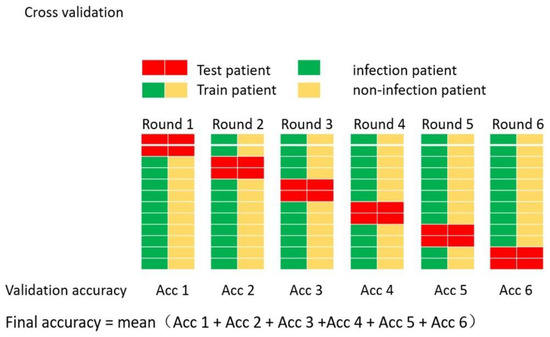 - The rest of the database was divided into five segments (dataset1, dataset2, ..., dataset5). Each dataset includes two infection cases and two non-infection cases. Randomly select four datasets as the training datasets, the remaining dataset is the validation dataset to check the model for over-fitting. This step is repeated five times such that five different training datasets and one validation dataset are produced. Each training and validation dataset were used to train 10 networks with different initial weights.