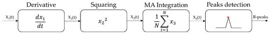 Block diagram of the implemented Pan-Tompkins algorithm.