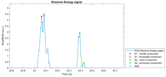 The use of approaches based on the Shannon energy envelope for the localization of heart sounds components is even more unusual [25], because most heart sound segmentation techniques focus on the heart sound in the overall and thus use sliding windows with a 50% overlap, which conceal the presence of components.