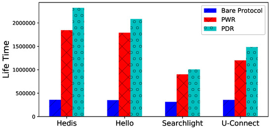 Lifetime. The lifetime of is illustrated in Figure 7 for different algorithms, both PWR and PDR prolong the lifetime significantly. For example, the lifetimes of PWD and PDR are and times longer than bare Hedis, respectively.