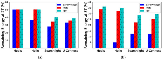 Percentage of Remaining Energy. We show the percentage of remaining energy (y-axis) after and time slots in Figure 8. After time slots, PWR and PDR are just a little better than the bare Hedis protocol (see Figure 8a), while the difference becomes much larger after time slots (see Figure 8b). By incorporating PWR and PDR, Spear can save power and extend the lifetime significantly.