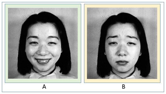 - Ekman, P.; Friesen, W.V.; O’sullivan, M.; Chan, A.; Diacoyanni-Tarlatzis, I.; Heider, K.; Krause, R.; LeCompte, W.A.; Pitcairn, T.; Ricci-Bitti, P.E.; et al. Universals and cultural differences in the judgments of facial expressions of emotion. J. Personal. Soc. Psychol. 1987, 53, 712. [Google Scholar] [CrossRef]