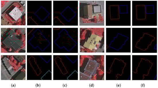For a visual evaluation, Figure 5 presents the contour extraction results of six input aerial images. For each image, the extracted curves are very close to the labeled ground-truth curves, where different curves are marked in different colors. One can see that the building boundaries have all been precisely predicted. This will be very beneficial for conducting corner detection in the subsequent step.