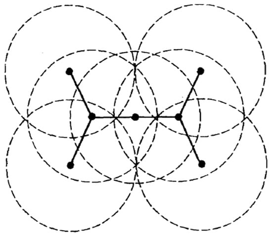 In general, ad hoc sensor networks are composed of multiple nodes randomly distributed in a certain area, and they can communicate in two ways. If a pair of nodes are within the communication range, they can communicate directly; otherwise, they can communicate through the forwarding of intermediate nodes. The connected dominant set (CDS) becomes the best choice for an ad hoc sensor network as the virtual backbone network [8,9,10], which guarantees the operation of the network by constructing the minimum connected dominant set (MCDS).The purpose of this paper is to ensure the connection of communication network links through different topological structure control, so as to improve the network performance and effectively increase the coverage of the network. Therefore, the question of connectivity is critical.