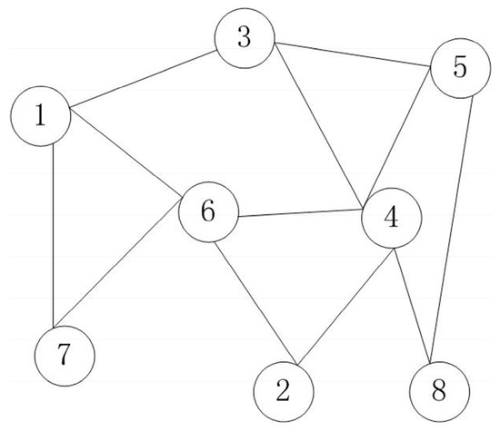 Assuming that all nodes in the ad hoc sensor network are distributed in a two-dimensional plane, each node has an omnidirectional antenna, the communication range of the node is defined as follows: take the node as the center, and the radius is equal to the transmission distance R of the node. The ad hoc sensor network can be abstracted into a unit-disk graph (UDG) when the transmission distance R of each node is fixed. In UDG graph, the topology of an ad hoc sensor network is represented by G = (V, E), where V denotes vertex set and E denotes edge set, and each node has a unique identifiable ID. For each pair of nodes u, v V, only if the distance between u and v is less than R, it is considered that there exists an edge in u and v, e = (u, v) E. Figure 1 is a simple UDG graph.