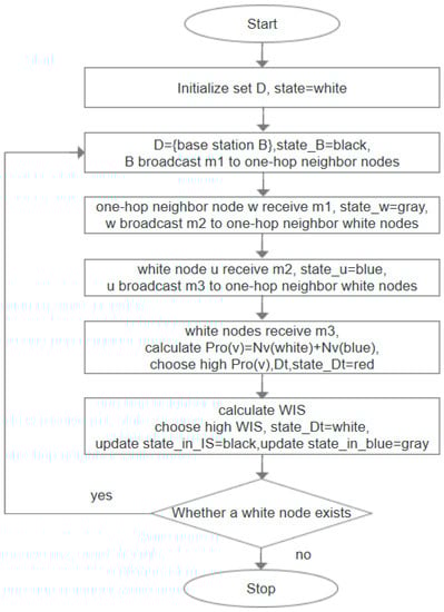 Flowchart of IC-MIS algorithm. The node that receives the broadcast message continues to broadcast the message to its one-hop neighbors.