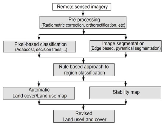 In recent years, many researchers proposed a combination of techniques for multi-source remotely-sensed data. This method is called the hybrid approach, which combines both pixel-based and object-based classification techniques (see Figure 6) [78].