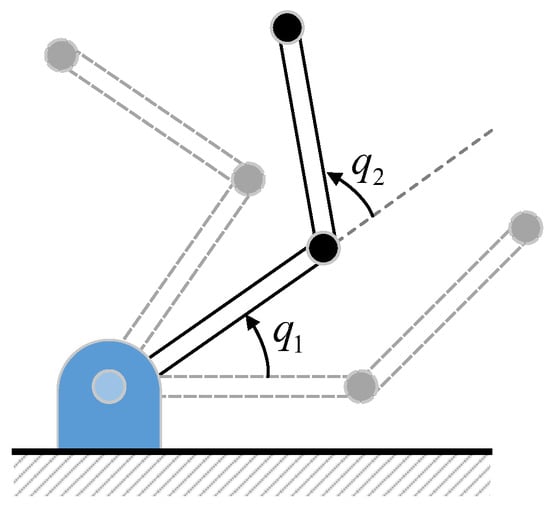 In order to demonstrate the effectiveness and advantage of the proposed FTO algorithm in estimating robotic disturbance, a simulation was conducted on a simple 2-DOF planar manipulator vertical to the ground as depicted in Figure 2.