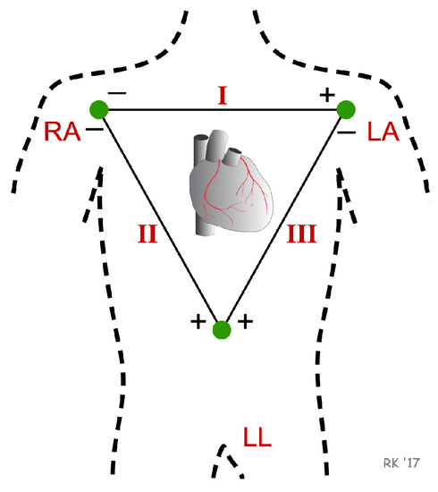 - cvphysiology. Electrocardiogram Standard Limb Leads (Bipolar). 2018. Available online: https://www.cvphysiology.com/Arrhythmias/A013a (accessed on 22 January 2019).