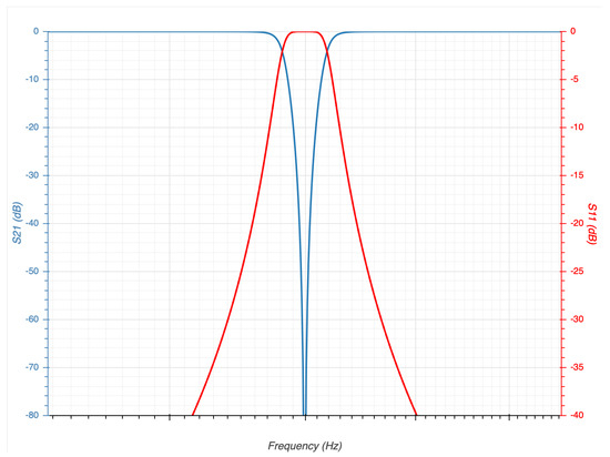 Bandstop filter response dB attenuation (with the features of Table 4).