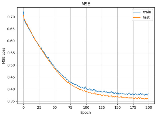 The mean square error obtained in the training and test phases are displayed in Figure 8. After the very first epochs, the values converge rapidly and remain constant almost linearly throughout the remaining epochs. The low values of the mean square error indicate that the training process is being done correctly (the attained values have low variation).