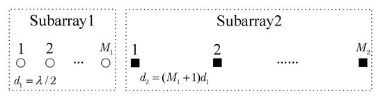 - Pal, P.; Vaidyanathan, P.P. Nested arrays: A novel approach to array processing with enhanced degrees of freedom. IEEE Trans. Signal Process. 2010, 58, 4167–4181. [Google Scholar] [CrossRef]