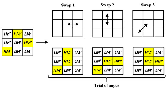 Illustration of the Direct Binary Search (DBS) swap operator, which is used in the quality improvement phase.