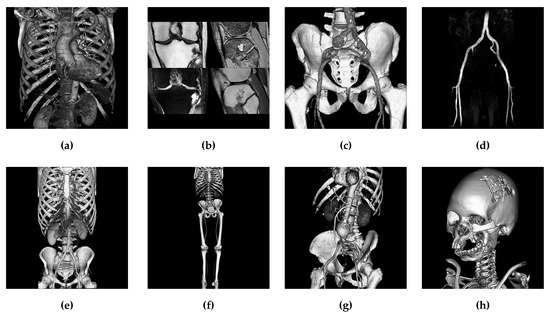 For evaluation, the performance of the proposed method is compared with the recently published methods in [17] (2015), [20] (2017), and [22] (2017). Because medical images are essential sources of visual data in smart cities (for example, a smart home-based health care system which needs to transmit mass medical images for telemedicine), eight 400 × 400 test images are collected from the public database [25] (Figure 6).