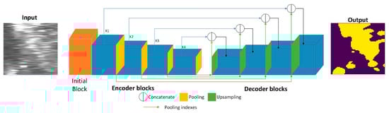- Badrinarayanan, V.; Handa, A.; Cipolla, R. Segnet: A deep convolutional encoder-decoder architecture for robust semantic pixel-wise labelling. arXiv 2015, arXiv:1505.07293. [Google Scholar]
