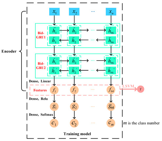 The designed GRU-SVM model is a combination of a GRU neural network as a deep feature extractor and SVM as a classifier. It makes the best of the advantages of the GRU deep neural network and SVM to extract the deep abstract features and complete an accurate classification. This model is described in detail below.