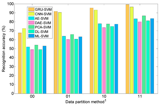 In this section, test experiments will be carried out to obtain the performance of the proposed recognition method. After dividing training data and completing the training process of GRU-SVM model, the recognition accuracy of testing data set will be gotten according to the testing process in Figure 7. Furthermore, performance testing and comparison experiments of different conditions and recognition methods also have been done to better illustrate the advantages of this recognition method.