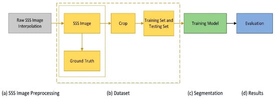 The experimental scheme of our SSS image segmentation process is provided in Figure 3. Accordingly, this section is arranged as follows: The collection method of dataset images is described and the SSS image preprocessing stage is shown in Section 4.1; the method used to get the ground truth of dataset is introduced in Section 4.2; the implementation details and parameters setup of the experiments are described in Section 4.3.