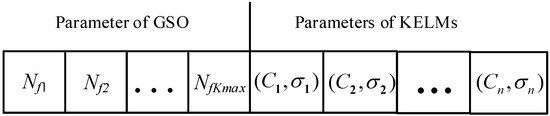 The MOSSA is firstly employed to optimize the parameters of GSO and KELMs simultaneously. As illustrated in Figure 2, the parameters are encoded in the location vector in MOSSA. The first part represents the number of selected features. The remained part is the parameters C and , which have great influence on the performance of KELM.