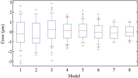 The box plots of error distribution with different models.